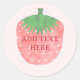 Adesivo Redondo Texto Personalizado de Desenho de Morango
