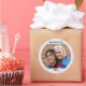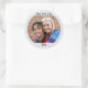 Sua foto exclusiva e duas linhas de texto personalizado destacam esses adesivos redondos personalizados.