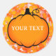 Adesivo Redondo Texto Personalizado Desenho de Pumpkin da Folha da