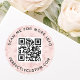 Adesivos cor-de-rosa claros e redondos com o seu código QR e texto personalizado. Altere as cores das fontes, mova e redimensione os elementos com a ferramenta design. Siga-nos no Facebook: @business stationery para mais produtos, notícias, vendas e muito mais.