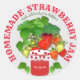 Morangos maduros, deliciosos e criados organicamente, prontos para adicionar o toque final a potes de compota caseira. Personalize o rótulo para atender às suas necessidades, é fácil mudar a cor do texto também.