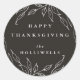 Design atualizado. Coordenar com os meus Convites de Ação de Graças - ou usar os autocolantes/selos de envelope. Folhas desenhadas à mão formam uma delicada borda para o seu texto totalmente editável. Este design de adesivo está disponível em outras cores e em outras versões com "Ação de Graças Feliz" escrito em uma fonte de script.