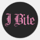 Adesivo Redondo Texto rosa "I Bite"