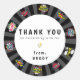 Adesivo Redondo Theme Birthday, super herói Obrigado