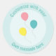 Colorful cartoon balloons on round stickers to custom with your own text.