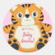Adesivo Redondo Tigre Chá de fraldas Rosa