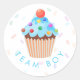 O Time Boy Gender Reveal Party Vote Cupcak Classic Round Sticker. Votem o grupo de cor rosa ou azul em uma festa reveladora de gênero com este adesivo! Ilustração de um cupcake doce azul em azul. O texto diz "garoto da equipe".