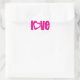 Mostre seu amor com este adesivo de texto rosa brilhante onde o o tem a forma de um coração. Desenhada por Sarah Trett.