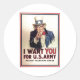 Adesivo Redondo Tio Sam, Eu Quero Você Para O Exército Americano