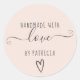 Adesivo Redondo Típica de amor feita à mão - rosa pincelado minima