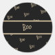 Este é um design de tipografia "boo" de Halloween fofo. Está na tendência de preto e dourado com tipografia estilosa. É perfeito para o Halloween e perfeito como lembrancinha de festa ou selo de envelope. Se quiser, você pode mudar o texto "Boo", digitando sua própria mensagem na caixa de texto personalizar (isso funciona melhor com um número semelhante de caracteres). Confira a ferramenta de edição de design para mudar a cor ou a fonte. Se precisar de ajuda com a personalização, ou para um design personalizado, entre em contato comigo pelo chat do Zazzle ou por e-mail: ursuladawnmoon@gmail.com