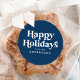 Adesivo Redondo Tipografia Retro Azul Felizes Festas