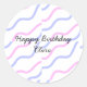 Adesivo Redondo Tiras roxas cor-de-rosa, feliz aniversário adicion