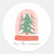 Adicione um toque festivo e alegre ao seu decoro de Natal, presente de Natal ou nota de saudação com este adorável adesivo sazonal. O Sticker tem um globo de neve vermelho e rosa com uma árvore de Natal decorada numa floresta quando está nevando. O texto abaixo diz que é a estação.
