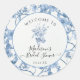 Adesivo Redondo Toalha Azul e Branco Elegante Floral Chá de Noiva