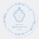 Estão disponíveis itens de Correspondência com o adesivo redondo clássico de repouso azul Crest.