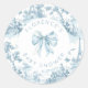 Toile de Jouy Bom dia bebe laço Chuvada de bebê Adesivo redondo clássico