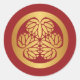 Adesivo Redondo Tokugawa Aoi Mon Japão Crest Dourado em Vermelho