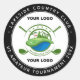 Vinheta de Golfe Personalizada do Clube Golf. Este adesivo único do torneio de golfe memorial apresenta seu texto personalizado e logotipo personalizado. Personalize este adesivo do clube de golfe com o logotipo e texto da sua empresa. Perfeito para torneios de golfe, itens e ideias de promocional de golfe, eventos memoriais de golfe, produtos corporativos de golfe, presentes de torneio de golfe, compra em massa para venda por atacado. COPYRIGHT © 2020 Judy Burrows, Black Dog Art - Todos Os Direitos Reservados. Vinheta redonda clássica do Swag Memorial Tournament do Golf Club Personalizado