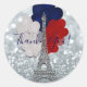 Adesivo Redondo Torre Eiffel Brilho Prateado Festa Vermelho Branco