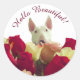 Adesivo Redondo Touro terrier com rosas - Olá Bela