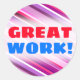 Este design de adesivo apresenta um padrão de linhas ou listras coloridas em vários tons de cores como rosa e roxo. Também apresenta o ditado motivacional "TRABALHO EXCELENTE!" em texto vermelho e azul. Autocolantes como estes poderiam talvez ser usados por professores, educadores ou tutores para reconhecer e motivar um estudante que fez um trabalho de excelente em um teste, teste, papel, projeto ou alguma outra tarefa acadêmica. [~Z0000117]