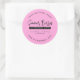 Crie as etiquetas de tendência para os seus produtos cosméticos usando esta etiqueta de produto redondo, rosa e preto, feminina. Apresentando a fonte do script de tendência, texto totalmente editável, cores e layout, esses adesivos de na moda podem ser usados em tampas, bolsas ou caixas de vidro cosméticas - verifique o tamanho para garantir um bom ajustado. Quer sejam etiquetas de fazer para loção, manteiga corporal, esfregaço corporal ou qualquer outro produto, esta design de etiqueta é super versátil.