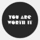 Adesivo Redondo Trendy Black & White você vale a pena motivacional