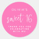 Adesivo Redondo Trendy Hot Pink Script Sweet 16 Aniversário Obriga