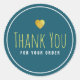 design azul com um roteiro moderno divertido e um coração de ouro para mostrar a apreciação do cliente. O texto e as cores podem ser personalizados.