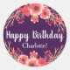 Vinhetas de aniversário de cor-de-água rosa brilhante e bonito cor-de-rosa com fundo de ameixa profundo e texto personalizado.