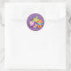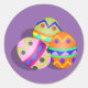 Adesivo Redondo Três Ovos de Páscoa Desordenados, fundo roxo