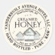 O design central ilustra um grupo de colmeias pequenas com pequenas abelhas. Personalize com o seu nome apiário, endereço e descrição do mel (bruto, engarrafado à mão, fonte de solteiro, etc.). Inclua também o seu peso líquido de mel. Conversões de peso líquido de mel comum: 8 oz (227 g), 12 oz (340 g), 16 oz (454 g), 32 oz (907 g), 5 lb (2,27 kg).