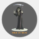 Adesivo Redondo Trick or Treat. Cartoon Grim Reaper