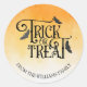 Adicione um toque personalizado aos seus favores do Dia das Bruxas com este adesivo redondo "Trick or Tratat" editável. Apresentando tipografia elegante, morcegos voadores e um fundo de cor de água laranja quente, é ideal para selar bolsas para tratamento, favoritos para festas ou envelopes festivos. Personalize com seu nome de família, título de evento ou mensagem especial para um detalhe de Halloween que os convidados gostarão.