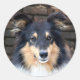 Truolor de beleza Sheltie ou Shetland Sheepdog face num adesivo de cor de tijolo de fundo amante