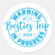 Adesivo Redondo Trip de Besties de Aviso em Andamento Azul em Bran