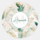 Adesivo Redondo Tropical de Verão, Dourada Folhagem Verde