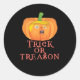 Adesivo Redondo Truque Ou Traição Halloween Impeach Trumpkin Desig