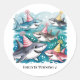 Adesivo Redondo Tubarões Cortados Sob A Festa de aniversário Das G