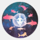 Adesivo Redondo Tubarões espaciais e arte de meditação