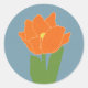 Linda tulipa de pêssego com folhas verdes sobre fundo azul. Use para Páscoa, Primavera, jardim e flores. Pares com o cartão de Vazio de coelho da Páscoa.