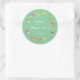 Tulipas editáveis e borboletas verde Chá de panela redondo. Design apresenta uma bonito faixa de Tulipas cor-de-rosa, amarela e laranja sobre um fundo verde. Uma borboleta cor-de-rosa e amarela que rodeia as tulipas, melhorando a alegre estética com um toque caprichoso! Use como um selo de envelope nos seus Convites de chá de panela e convites para temas florais! Personalize o texto e altere o estilo e a cor da fonte para se adequar. Reposicione e remova o texto usando a Ferramenta de Design, se necessário.