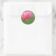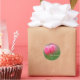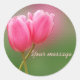 Duas tulipas cor-de-rosa coladas contra um fundo de vidro verde. Adicione facilmente a sua própria mensagem para personalizar este adesivo.