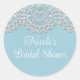 Adesivo Redondo Turquesa Azul Branco Renda Coração Casamento Noiva