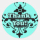 Lindos adesivos em turquesa e preto com um lindo fundo floral. Texto: Obrigado. Estes autocolantes vêm em dois tamanhos, e são perfeitos por selar cartões de agradecimento. Se você estiver enviando notas de agradecimento por presentes de casamento, presentes de chá de fraldas, ou qualquer outra razão, esses adesivos farão seus envelopes parecerem especiais.
