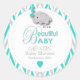 Adesivo Redondo Turquesa, Chá de fraldas Elefante de Cinza Branca