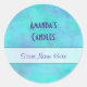 Imagem de um abstrato de aspecto etéreo pintado em cores tropicais de verão - verde-aqua, azul-turquesa e roxo-claro com design marmoreado. As cores se misturam e se misturam para criar um padrão suave e delicado. Velas criativas e artísticas / etiqueta. Personalize com seu nome, negócios e outro texto, como cheiro ou obrigado, etc...