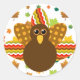 Adesivo Redondo 🦃 Turquia com penas coloridas, com folhas