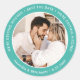 Adesivo Redondo Turquoise Modern Weding Photo Save The Date (Foto